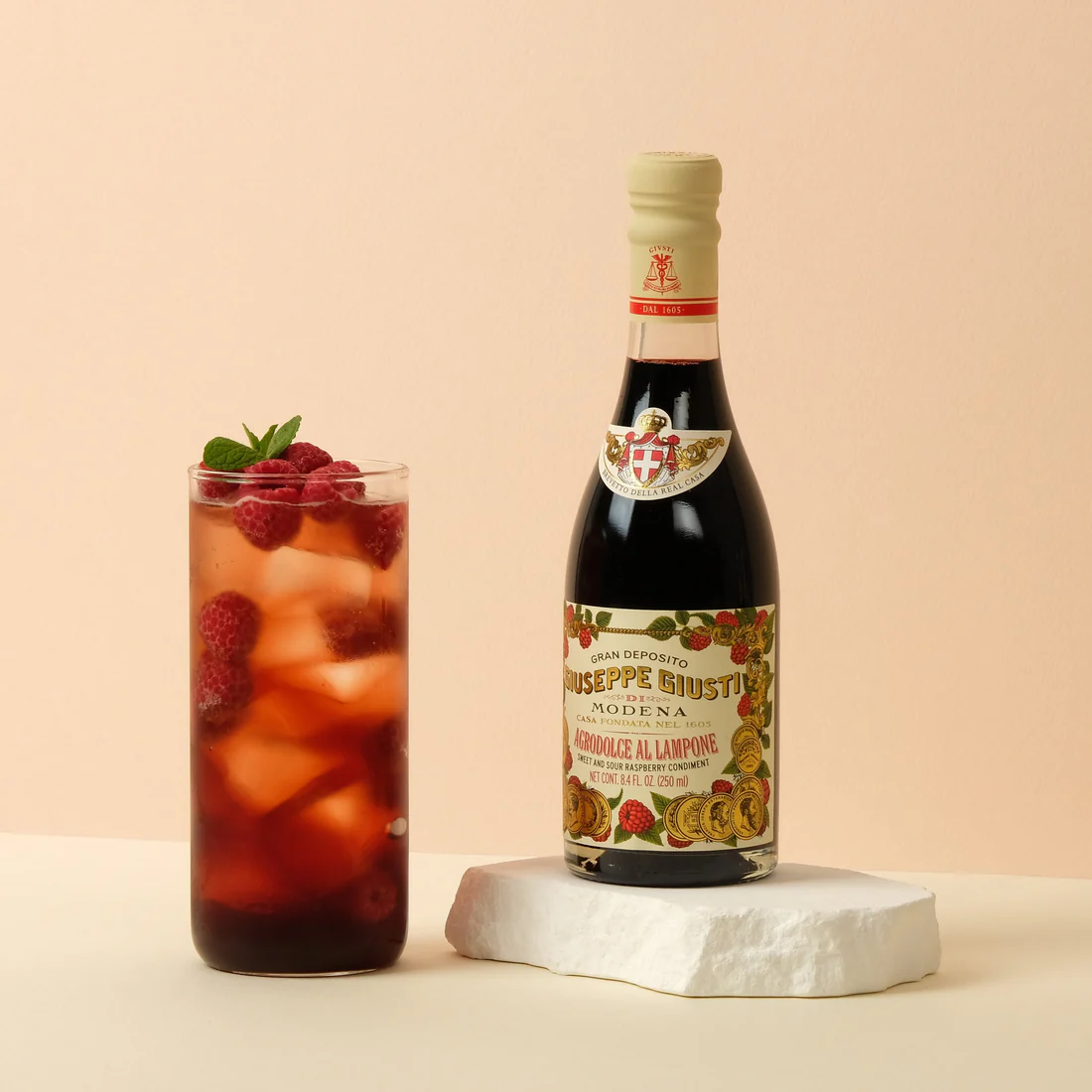 Le condiment aigres-doux à la framboise Giusti est frais, léger et riche en saveur fruité, avec un équilibre parfait entre l’aigre du vinaigre de vin et le sucré du jus de fruits frais et du moût de raisin utilisés dans la préparation. Le condiment aigre-doux à la framboise se distingue par une finale douce et longue, avec une très belle couleur et par un agréable équilibre de saveurs.